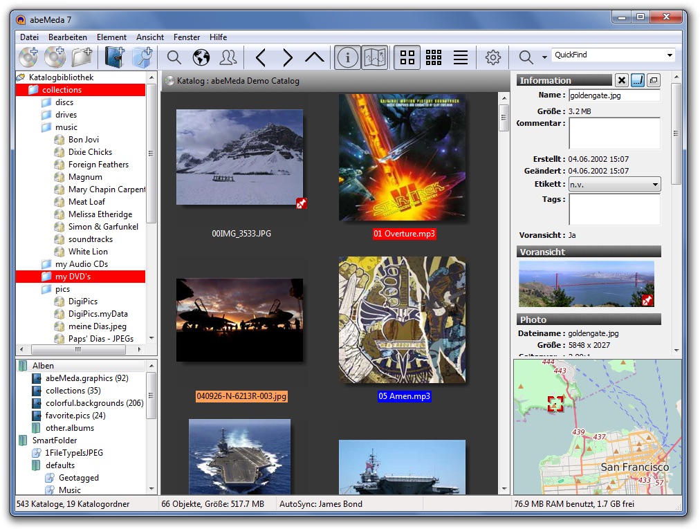 behält den Überblick über Ihre Photos, Songs, Videos und all die